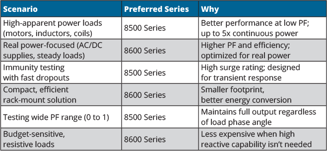 - Use the 8500 Series when your application demands flexibility across wide power factors, reactive loads, and transients.